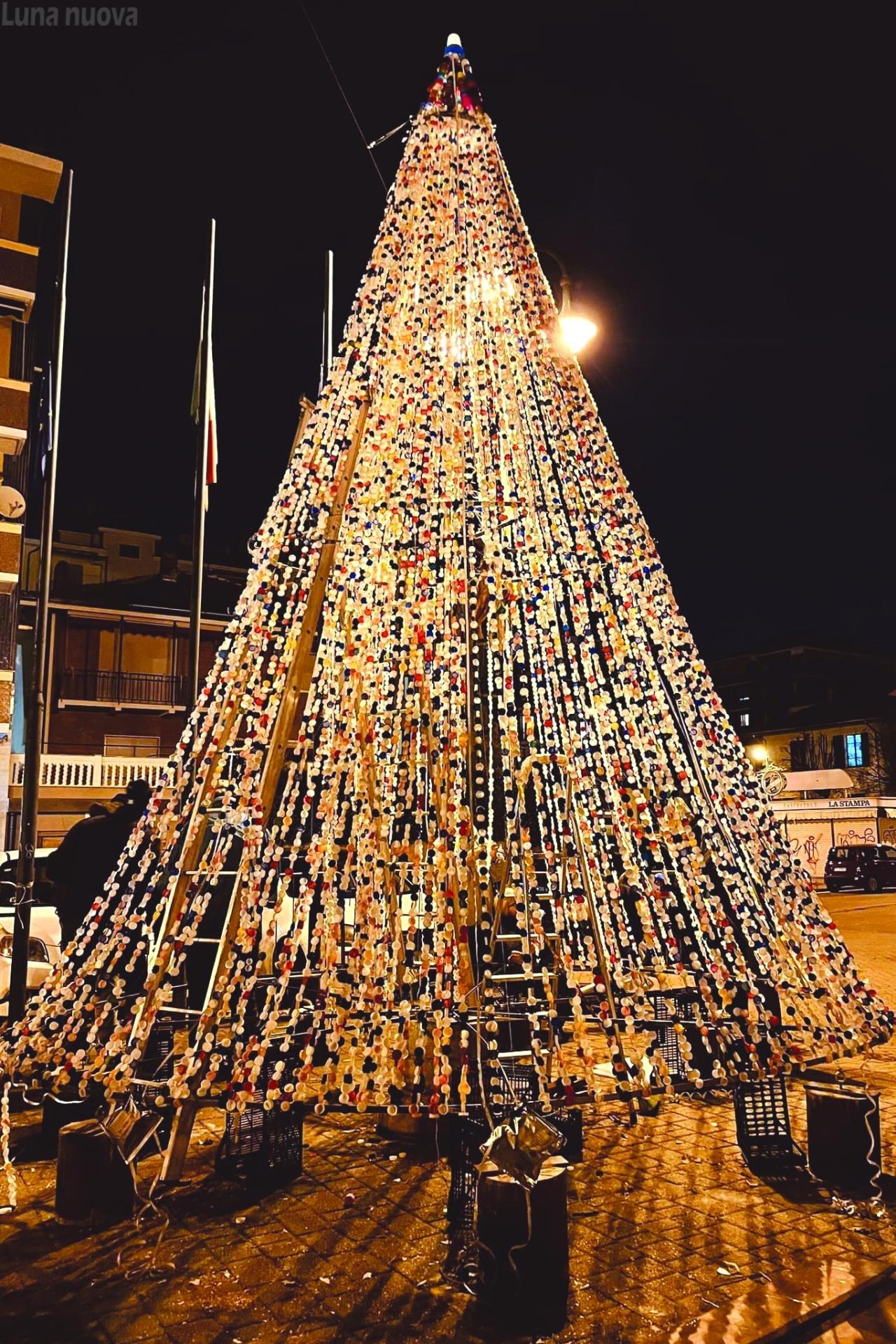 Alpignano accende un albero fatto con 24mila tappi Luna Nuova